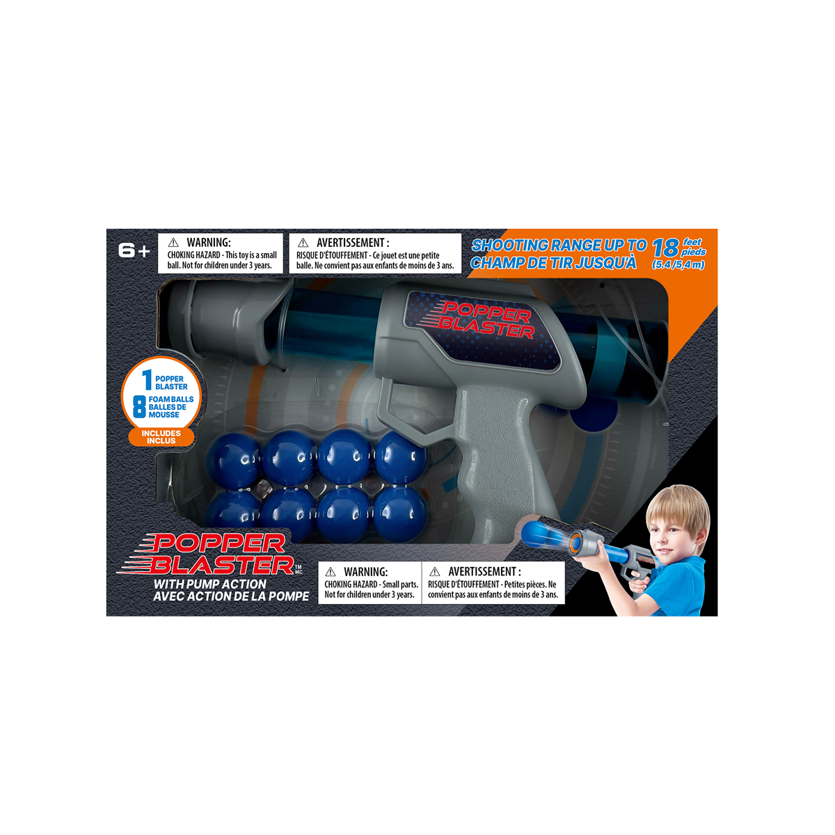 Experience high-powered fun with our Popper Blaster, shooting foam balls up to 25 feet! Easy to use – just pump and shoot! This set includes 1 Popper Blaster and 8 soft foam balls. Get ready for endless action-packed playtime! Practice your aim with a barrel that can rotate 360 degrees. Load the ball, pull back & push, watch the ball shoot out.