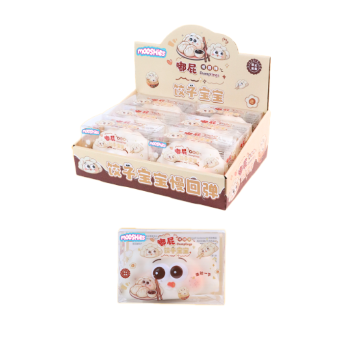 MOOSHIES Booty Dumplings are fun, food-inspired squishies with a cheeky dumpling design and a super-soft, slow-rise texture. Cute, squeezable, and full of personality, they’re perfect for stress relief, collecting, gifting, or adding a little humor to any squishy collection.